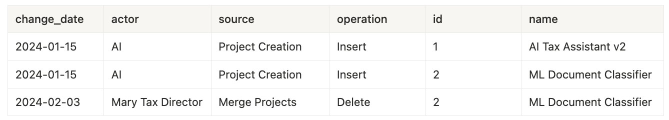 Having an Audit Log gives Neo.Tax powerful capabilities: we can answer questions like "what did this customer's tax calculation look like on March 15th?" or "who changed this expense allocation and when?" But these aren't just nice-to-haves—they're essential for regulatory compliance, customer support, improving the product, trend analysis, and debugging production issues.
